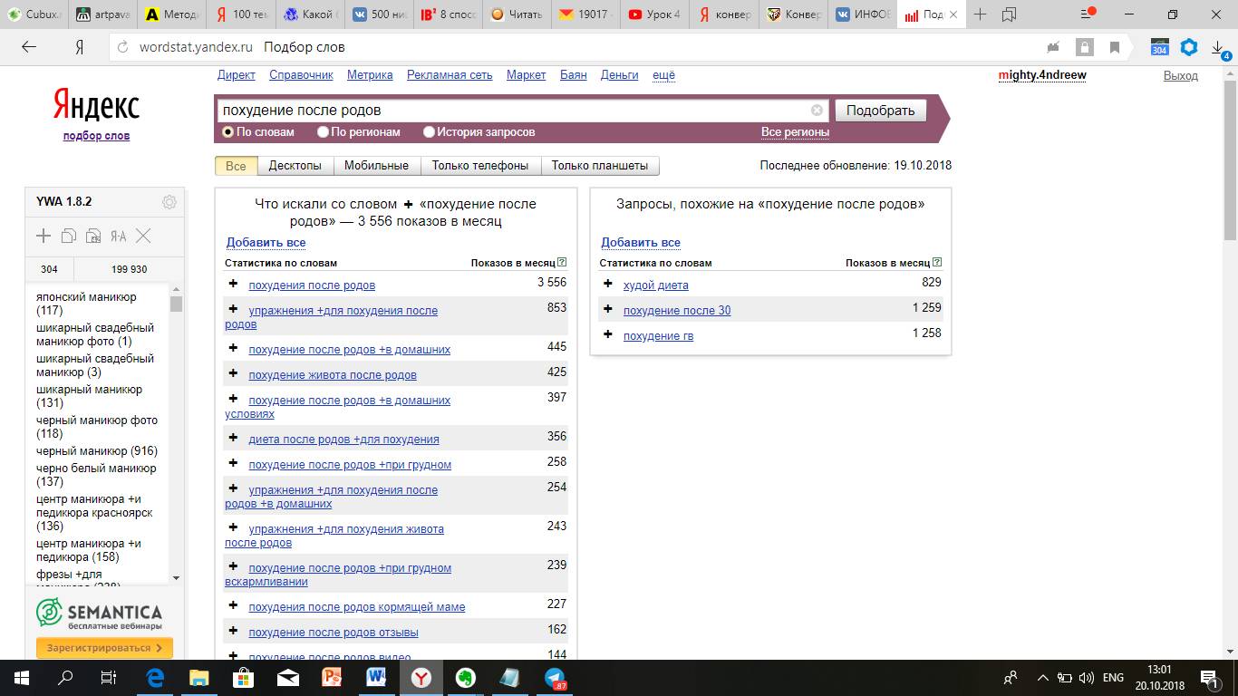 Первый шаг – Найти тему. Мы решили с вами остановиться на теме похудения. А если точнее, то похудение для женщин после родов. Чтобы понять, будет ли тема популярна, проведем аналитику запросов в Яндексе.