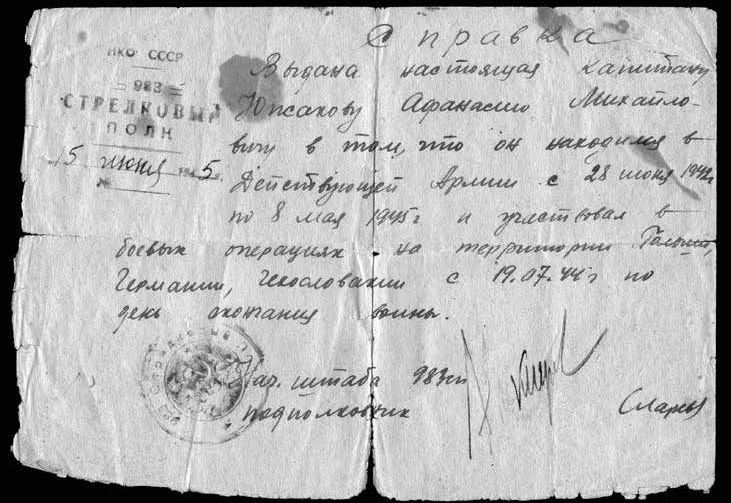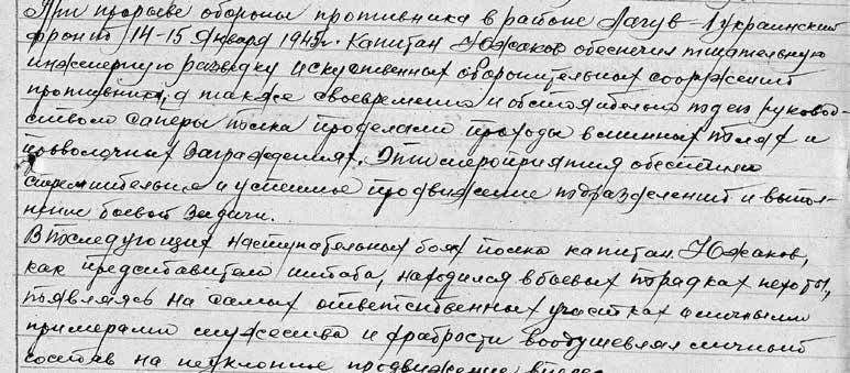 Изложение личного боевого подвига А. М. Южакова, на основании которого он был представлен к награждению орденом Отечественной войны II степени.