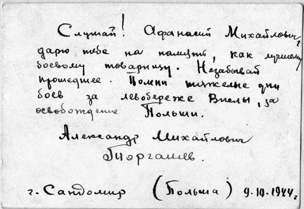 Мы встречали упорное сопротивление немецких захватчиков отчаянно, но безуспешно бившихся за каждый город, за любой населенный пункт, каждый узел. Однако жестокое сопротивление армии Вермахта успеха не имело. Подразделения Красной армии продвигались вперед, освобождая города и сёла на польской земле: Сандомир, Нджеюн (название не выяснено, возможно Енджеюв – прим. ред.), Заверце, Бытом, Легница и Поле. Освобождение городов и сёл дало возможность народу Польши избавиться от ужасов, которые принес фашистский зверь.