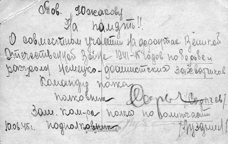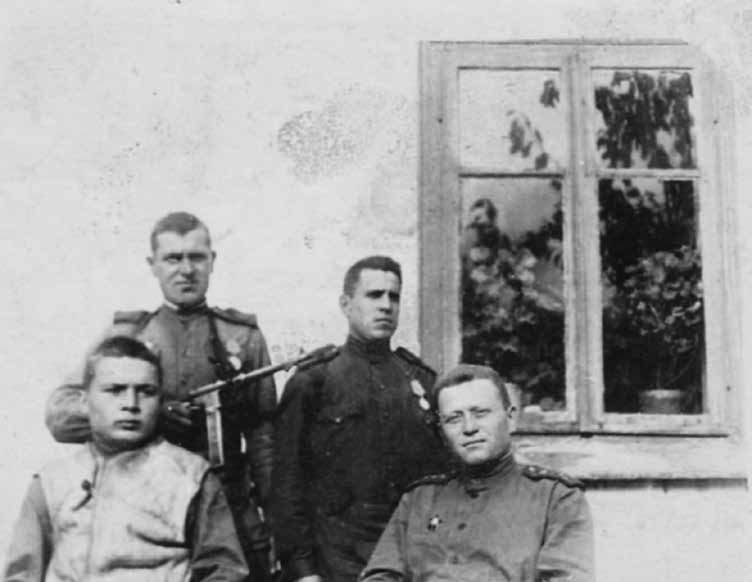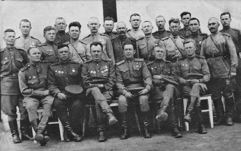 На фото в нижнем ряду (слева направо): третий – командир полка полковник А. П. Сарычев; последний в ряду – А. М. Южаков.
