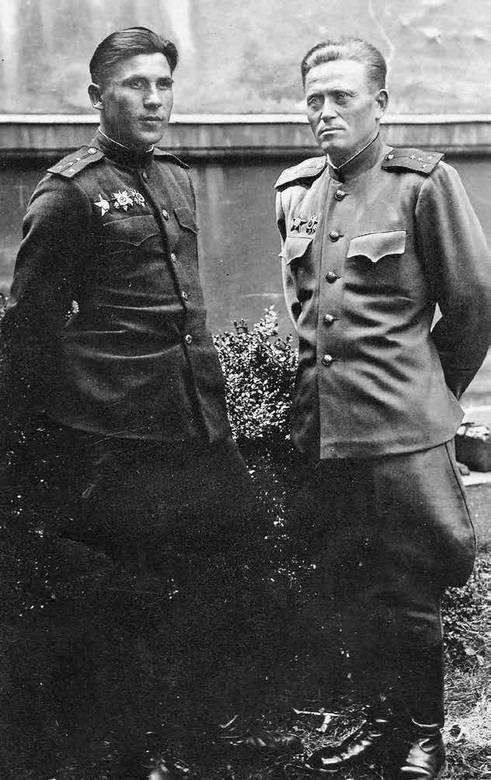 На переднем плане капитан Александр Михайлович Торгашев, товарищ Афанасия Южакова. г. Сандомир, Польша, 9 октября 1944 г.