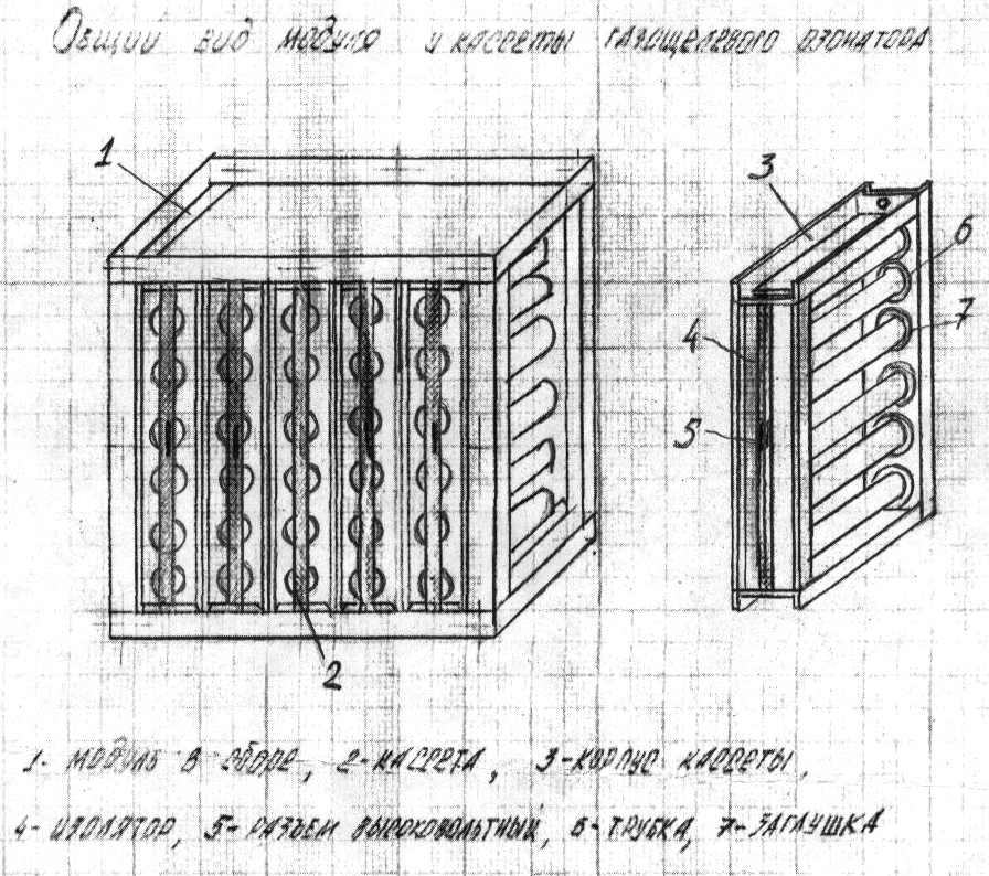 Рис. 1 Общий модуля и кассеты газащелевого озонатора: