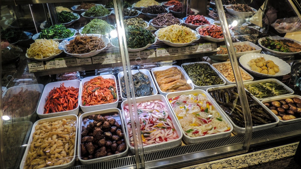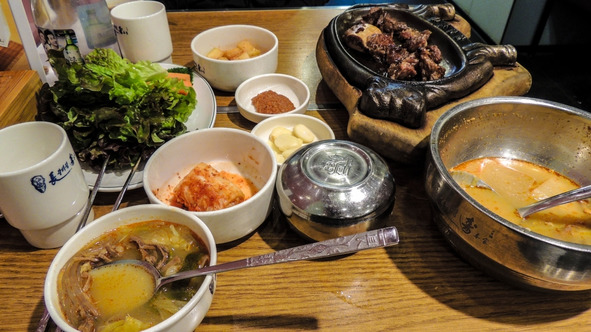 За 20 баксов нам принесли мерзский острый супчик, пару сладких ребрышек и кучу закуски типа кимчи. Практически ничего из этого есть было невозможно.