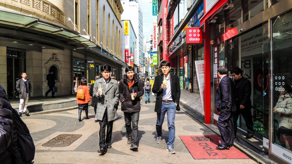 Все мужчины же наоборот сдержано-деловиты. 90% населения ходят в наушниках и с телефоном в руках, даже бабушки и дедушки.