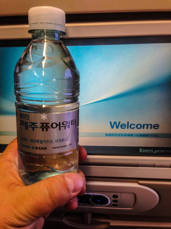 Сразу дают бутылочку воды и комплект трусы-носки-зубная щетка и самое важное тапочки. Жирный плюсик корейцам.
