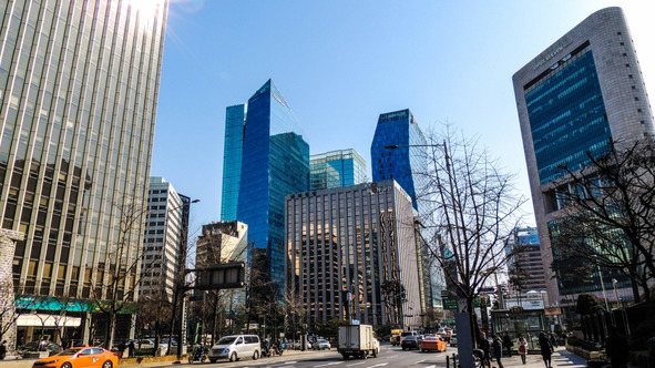 Окружающее очень напоминало опять же сто раз упомянутый Гонконг, но с каким то японским акцентом. Спустя полтора часа езды (аэропорт довольно далеко от города) прибыли в центр. Здесь царство небоскребов в любимом мною стиле «стекло и бетон».