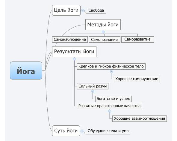 Итак, в «Йога-сутрах» указано, что йога – это способ очистить своё сознание от заблуждений, накопленных в течении жизни и мешающих жить (ЙС, 1.2). Или другими словами, йога – это дисциплина ума. Цель йоги – освободиться от негативного влияния собственных мыслей, эмоций, а также гун материальной природы, влияющих на нас 24 часа в сутки. Достигается это посредством практики как физических, дыхательных и психических упражнений, так и определённого образа жизни, направленного на развитие разума и нравственных качеств (таких, как доброжелательность, ответственность, терпеливость, решительность, настойчивость, уверенность, целеустремлённость и т.д.). Результаты практики йоги – это успех в любых начинаниях, здоровье, крепкий разум, хорошие взаимоотношения с окружающими людьми, достаток и т. д.