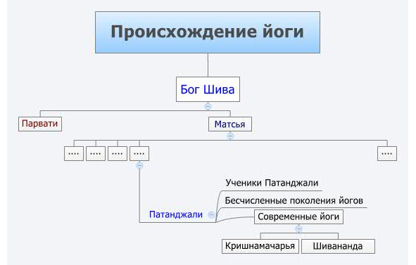 Основателем йоги считается бог Шива: легенда гласит, что он поделился знанием йоги со своей супругой Парвати, их разговор подслушала рыба Матсья, которая с помощью подслушанного знания настолько развила свои способности, что смогла передать это знание людям.