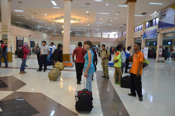 При входе в зону контроля аэропорта нужно платить небольшую пошлину, и это правило действовало абсолютно во всех аэропортах Индонезии. К основному билету наклеивается марка об оплате, а после этого проходишь в зону.