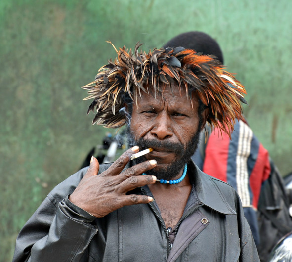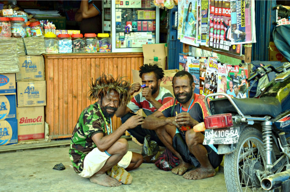 Папуасы резко отличались от остальных индонезийцев: выступающие надбровные дуги, крупные носы, тяжёлая нижняя часть лица были присущи им. Кудрявые чёрные волосы не имели намёка на седину даже у престарелых личностей. Своеобразные причёски во многом сродни африканским мотивам: мелко плетёные косички, жгуты-дреды, но яркой особенностью оказались курчавые бороды, напоминавшие бороды староверов, только у всех со смоляным отливом. Народ курил. Курил так, что только в Книгу рекордов Гиннеса!