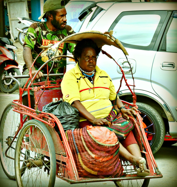 По улицам городка неспешно передвигаются велорикши. Это основной транспорт в Вамене, на нём перевозится всё или почти всё – везут продукты, закупленные на рынках, товары для дома и строительства, мебель, да и сами папуасы с удовольствием им пользуются.