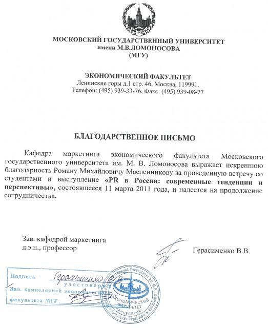 Благодарственные письма