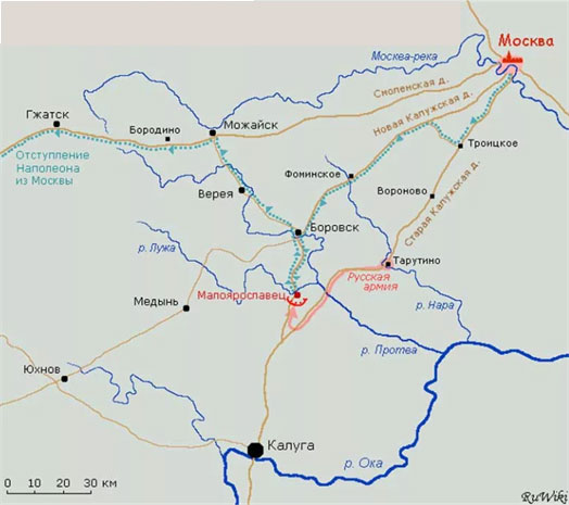 Рисунок 7–18. Отступление «Великой» армии Наполеона из России (даты на схеме по новому стилю)