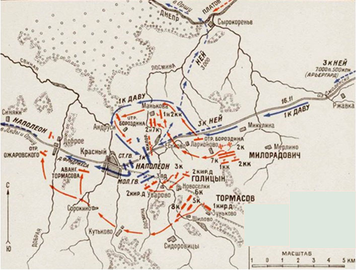 Рисунок 7–15. Сражение при Красном в ноябре 1812 года (даты на схеме по новому стилю)