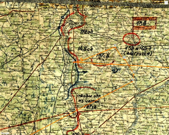 Авиацией противника жел.-дор. сообщение Могилев – Чаусы прервано.
