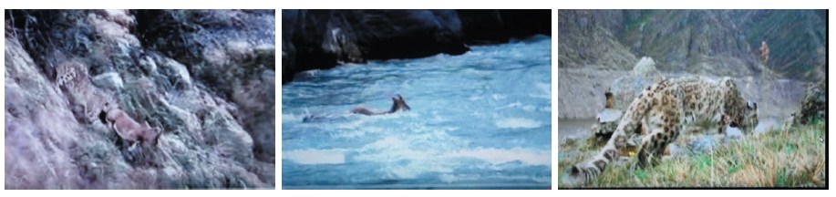 Та прыгнула в воду, а раненый барс спрятался в камнях. Течение в реке было сильное и коза уже не могла плыть, она совсем обессилела, её понесло вниз. Али побежал вдоль по течению и там прыгнул в воду. Но течение и его сбило с ног. Так и несло их пока река не расширилась и течение не ослабло. Там Али перехватил козу и с большим трудом выбрался на берег.