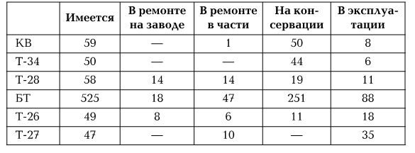 Второй момент, который обращает на себя внимание, – это характер эксплуатации новой матчасти и распределение обученных водителей. Далеко не все танки постоянно эксплуатировались. Причем это не было прерогативой Т-34 и КВ. Такой же принцип исповедовался в отношении танков всех типов (см. таблицу).