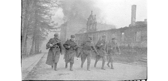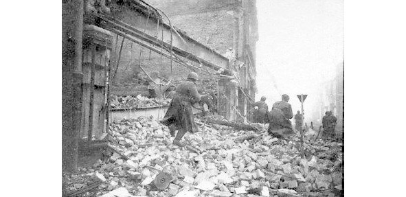 Прошитые снарядами дома, с осыпавшейся черепицей, с отвалившимися стенами каменных домов. Узкие улицы, ставшие ещё уже от развалин домов, погребённых немецких солдат в мундирах мышиного цвета. Чёрные паукообразные танки с белыми крестами и отсечёнными горлами стволов орудий. Полк завязал уличные бои, прорываемся за город и устремляемся к городу Глейвицу.