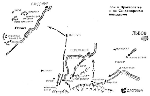 3-го января 1945 года выгружаемся и стоим лагерем в 18 км. за станцией Жешув, в 40 км. от линии фронта. Слышны раскаты мощной артиллерии, это наши штурмуют укрепления врага на левом берегу Вислы. В небе часто видны самолёты П-2 в сопровождении Илов, уничтожающих укрепления врага. Всё дальше и дальше уходил вал войны и стал слышен только гул и вздрагивание земли от бомбёжки.