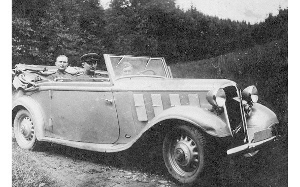 В тот день, когда разведка соседних полков донесла, что немцы начали отвод войск в направлении Чехословакии, я дежурил при штабе на трофейном мотоцикле БМВ с коляской. Полк поднялся и двинулся по пятам немцев. Вскоре начался подъём в горы и комполка с замполитом, видимо, не желая рисковать солдатами, решили лично обследовать дорогу. Километра через два, чудом преодолели заминированный участок дороги, мы наткнулись на разбитый немецкий грузовик с двумя 200 – литровыми бочками спирта. Спирт вылили на землю и я добавил его в бензобак мотоцикла. Однако километров через 5 – 6 (немцев всё не было), а спирт дал о себе знать – мотор мотоцикла перегрелся. Вскоре мы наткнулись на корчму. Официантки подняли визг – приготовились угощать отходивших на Запад немецких офицеров, а тут – русские. У хозяина корчмы в гараже стояла новая легковая машина «Ганомаг» без аккумулятора. Машину хозяин не хотел нам отдавать, заявив, что аккумулятора у него нет. Пришлось ему пояснить, что если не принесёт через, то через пять минут будет расстрелян. Хозяин убежал в соседнюю комнату и вернулся с аккумулятором. Вышли, завели машину, оказался отличный автомобиль с кузовом типа «фаэтон» и тентом, уложенным на заднем капоте. К нашим решили возвращаться по другой, параллельной дороге, которую отыскал комполка по карте. Дорога была пустынная, но проехав два километра, после крутого поворота, мы онемели.– навстречу нам двигались колонны отступавших немцев. Комполка побелел лицом и проговорил, – «Не разговаривать, смотреть немцам в глаза, оружие поставить на изготовку». Гитлеровцы стали принимать правее, готовясь пропустить нашу машину. Командир шепнул мне, чтобы я разворачивался, но дорога в этом месте была узкая, к тому же я путался с переключением скоростей. Так и двигались – немцы на запад, а мы на восток. На дороге пыль, встречные офицеры что-то машут нам рукой, а мы едем с невозмутимыми лицами. Часть немецких колонн уже прошла, когда мне удалось —таки развернуть машину и мы, не оглядываясь, снова обогнали немцев и, выехали на дорогу, по которой двигался наш полк. Как ругал себя комполка, что по его вине, мы все четверо едва не погибли в самом конце войны! А ещё попросил нас молчать об этом случае, ибо комдив узнав случившееся, за такие бы «подвиги» по головке не погладил. Теперь – то о случившемся в то далёкое время можно рассказать.