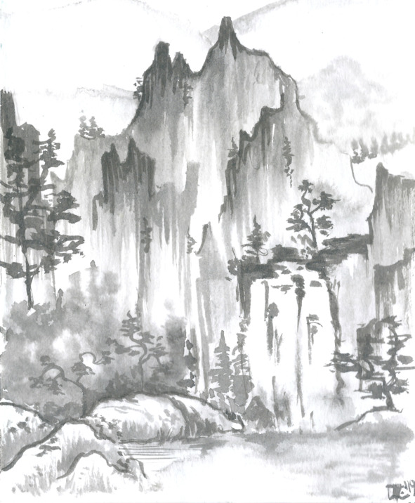 Скалы (2019). Бумага, тушь. 14 х 16,5 см