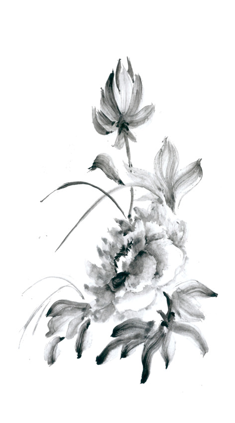 Пионы (2019). Бумага, тушь. 9,5 х 17 см
