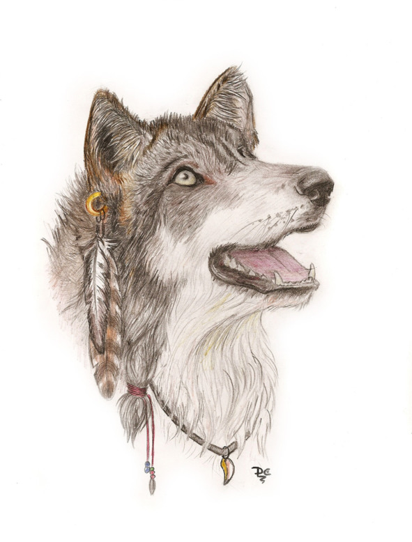После долгого увлечения углем и тушью чувствую: не хватает цвета. И вот я вновь возвращаюсь к краскам и поискам неоткрытых земель. Я делаю небольшой круг через попытки рисовать пастелью и цветными мелками и на какое-то время снова задерживаюсь на цветных карандашах, рисуя один за другими «портреты» фантазийных антропоморфных животных, в основном собак и волков.