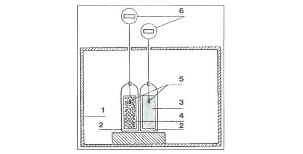 Two vessels – one with a porous medium, the other – with a solid, are located in a thermally insulated cabinet. They have thermal sensors; the temperature inside is measured every 20 minutes.