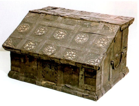 В России, как и в других странах, сундучные изделия получили распространение очень рано. Одно из первых упоминаний встречается в Изборнике Святослава (1076): «Изидошя ис полатъ техъ мужи крилати… носяште ларе»44. В новгородских берестяных грамотах XII века встречаются упоминания о сундуках и коробьях (см. ниже).