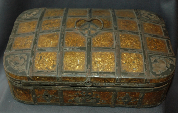 Надо отметить, что обивка полосами просечного железа дубовой основы, которую производили холмогорские мастера, не была их изобретением, а отражала общую европейскую традицию. Например, в Гродненском историко-архитектурном музее хранится сундучок («куфэрак»), датируемый II половиной XVII века78. Он был изготовлен в Великом княжестве Литовском. Дубовая основа обита полосами просечного железа. Вещь напоминает холмогорскую скрыню, но без верхнего отделения. Внутри несколько выдвигаемых ящичков, закрываемых двумя дверцами79.