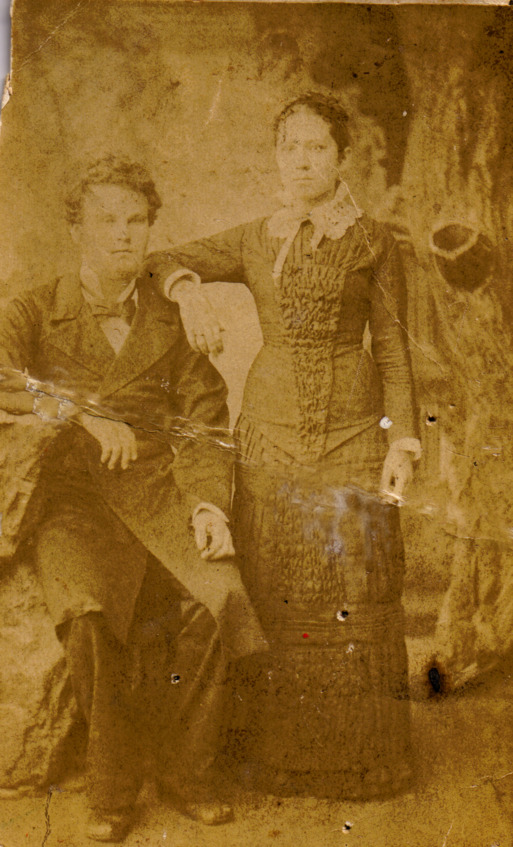 Вот первая, мутная неразличимая фотография: прабабушка Анна Никандровна и прадед Виссарион Устьянцевы. Их лиц совсем не видно, но угадывается, что они молоды. Вот еще фотография прадеда, молодого, красивого. Видны молодые усики, а пальто, похоже то же самое, что и на первой фотографии. Фотография сделана в Иркутске, но даты на ней нет.