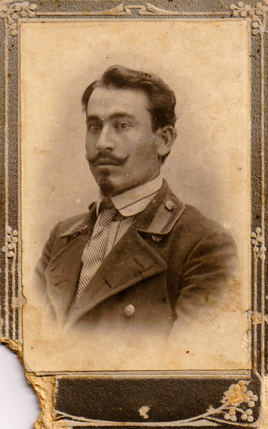 Никогда и ничего по этому поводу. С фотокарточки смотрит импозантный (любила бабушка этот эпитет) молодой мужчина с усами одетый в студенческую куртку. Вероятнее всего, снимок сделан в Киеве во время учебы в Университете до знакомства с бабушкой. Дед до того, как стать лысым и жениться, был темный шатен, с лихими усиками и бородкой. Позднее он носил только усы.