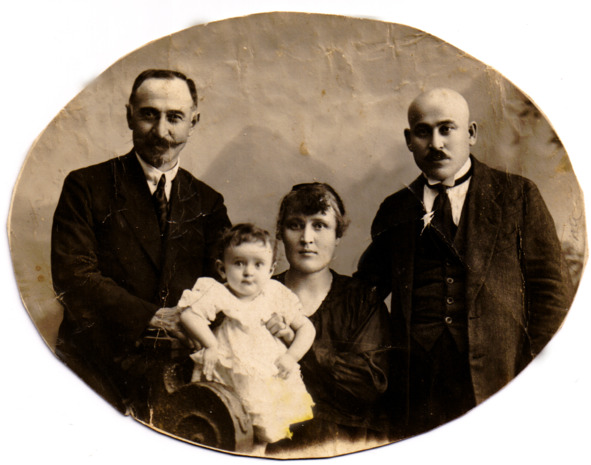 Одна семейная: дедушка, бабушка, крестный мамин и мама в виде симпатичного толстенького младенца.
