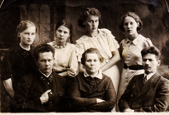 И вот фотография семьи Хороших и мамы среди них, а дяди Бори нет с ними, он в это время в Москве в МИИТе.