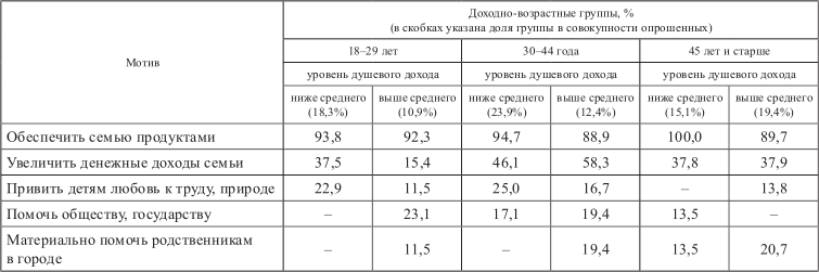 Таблица 1.1. Мотивы ведения личного подсобного хозяйства, % ответивших в группе (респондент мог отметить несколько позиций) [182, с. 10]