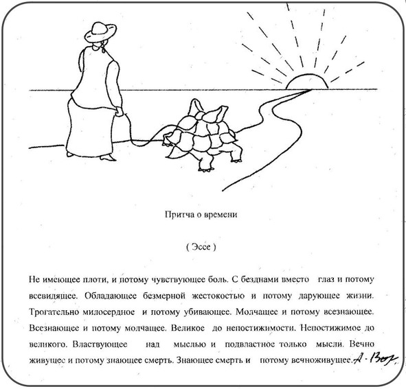 Не имеющее плоти, и потому чувствующее боль. С безднами вместо глаз и потому всевидящее. Обладающее безмерной жестокостью и потому дарующее жизни. Трогательно милосердное и потому убивающее. Молчащее и потому всезнающее. Всезнающее и потому молчащее. Великое до непостижимого. Непостижимое до великого. Властвующее над мыслью и подвластное только мысли. Вечно живущее и потому знающее смерть. Знающее смерть и потому вечно живущее.