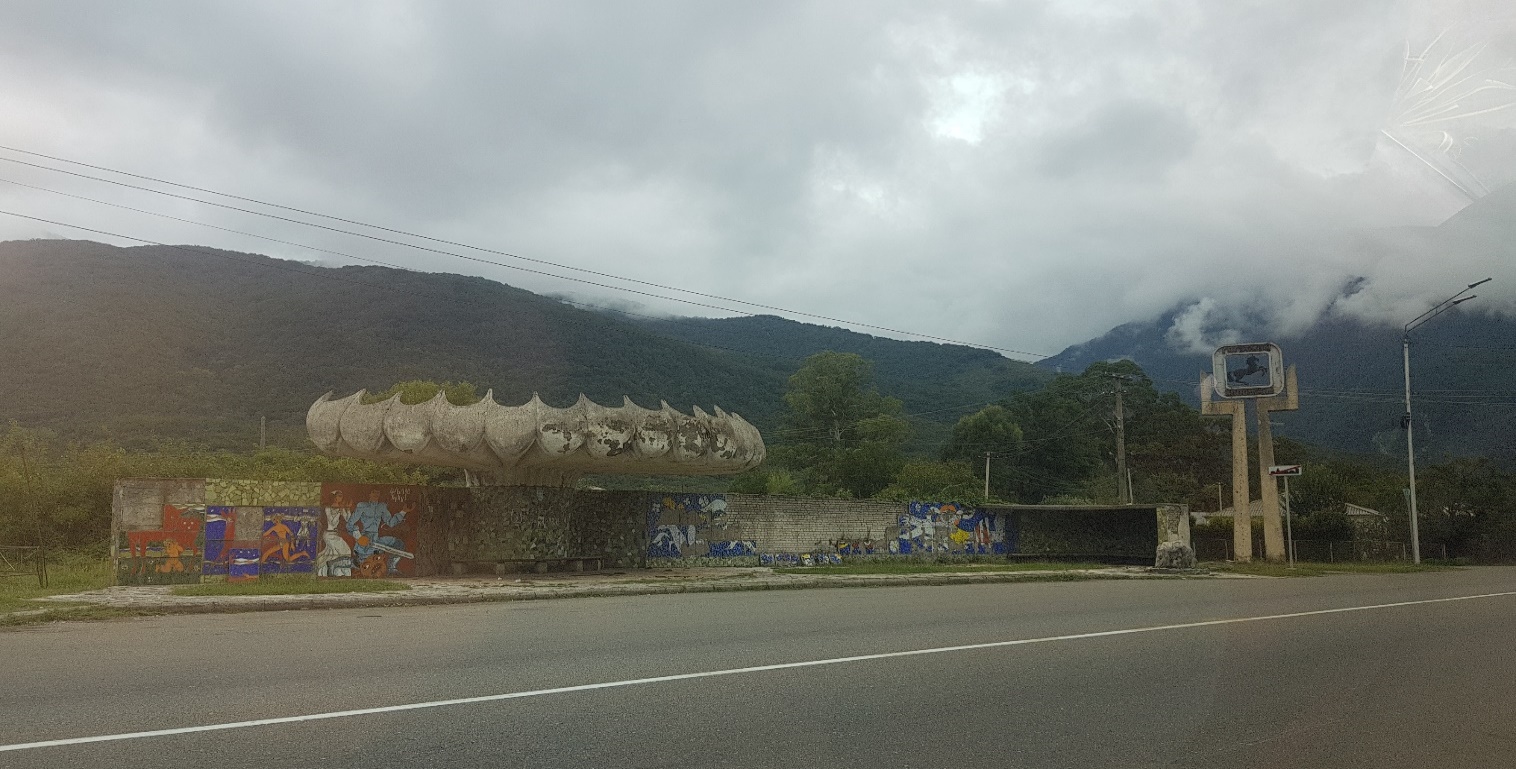 Абхазский стиль вождения чем-то напоминает арабский. Такие же бешеные скорости с обгоном через сплошную и на пешеходных переходах, то же презрение к ремням безопасности, те же разговоры и смс-ки (а в этот раз даже видеозвонок) за рулём, тот же ледяной поток из кондиционера на опешивших пассажиров. В нескольких местах дорогу преграждали коровы, меланхолично взирающие на стремительный бег автомобилей. Сама дорога некоторое время шла по возвышенности вдоль побережья Чёрного моря. На уровень ниже, между ней и морем, тянулась железная дорога. Слева вершины гор обволакивал густой туман. Было зелено в глазах от красивейшей местной флоры: пицундская сосна, эвкалипт, бук, пихта, каштан, яркие цветы и высокие травы…