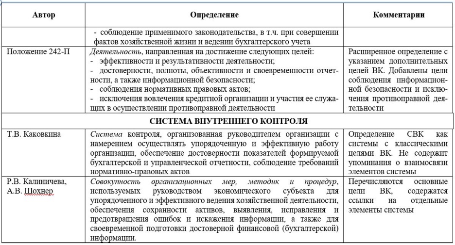 3. Отдельными исследователями и регулирующими документами дается определение «системы внутреннего контроля» как совокупности мер, методик и процедур, направлений или процессов, органов и направлений внутреннего контроля.