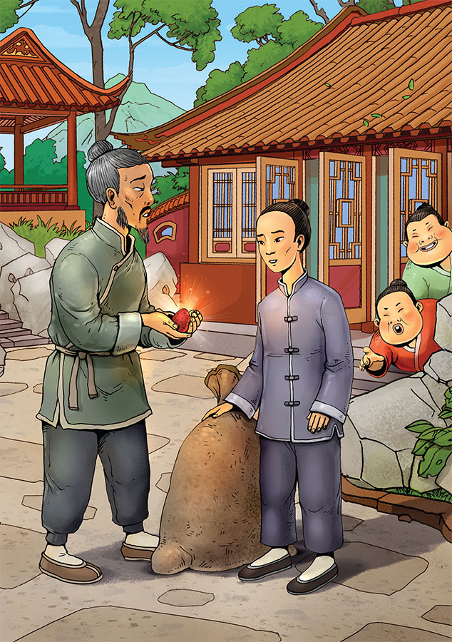 К распределению имущества приложила руку мачеха: приказала Лею отдать дом Жонгу, а повозку с ишаком и коллекцию фарфоровых фигурок – Баи. Лей пытался противиться, ведь изначально он хотел отдать дом младшему сыну. Да под напором троих не смог ничего поделать. Больше у него почти ничего не было. Он смог отдать родному сыну только инструменты для работы и ещё…