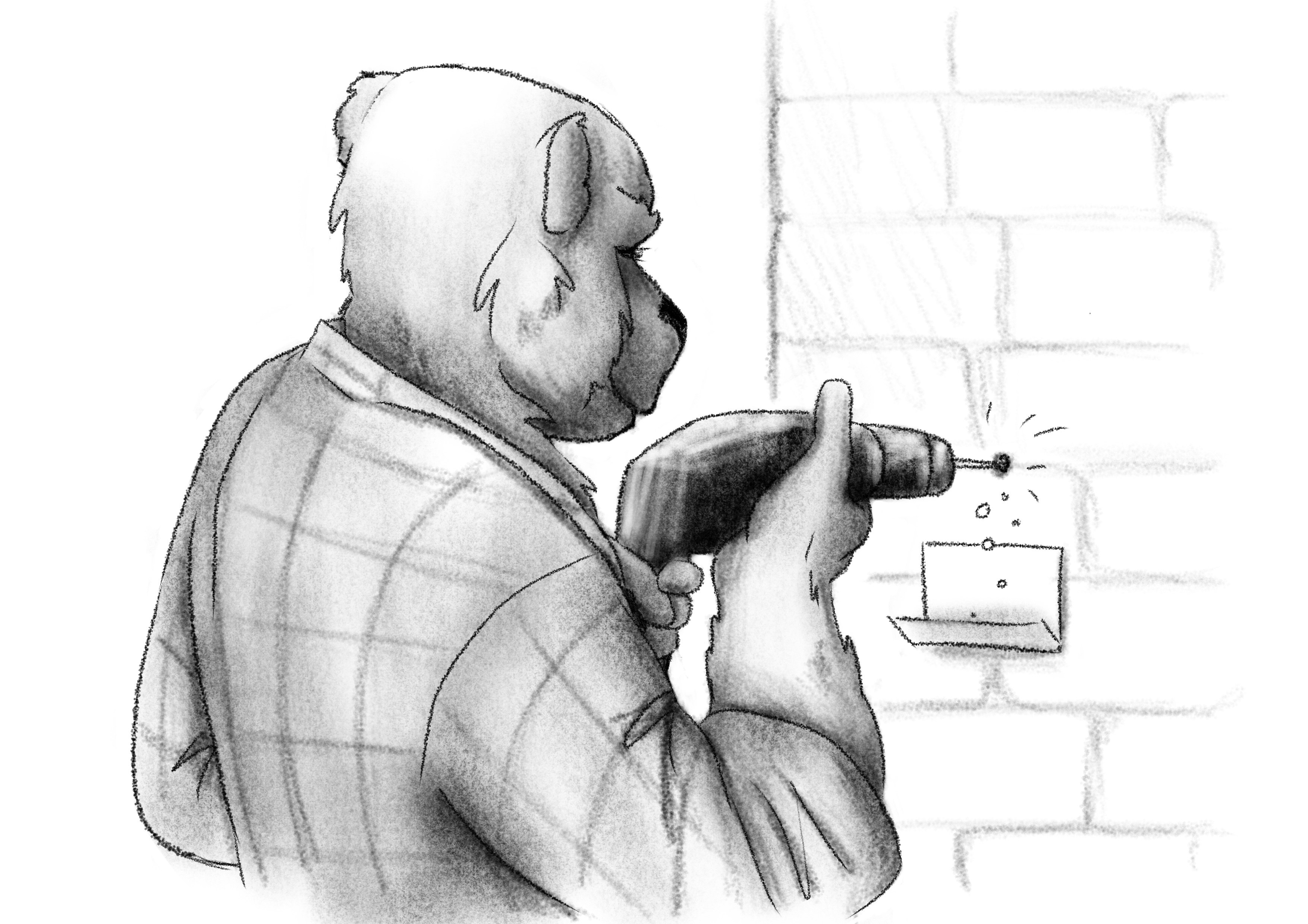 Прежде, чем сверлить дырку в стене, наклейте под место сверления бумажку, и согните её. Мы получили кармашек для сбора пыли. И жена ворчать не будет!