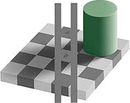 Вспомним иллюзию тени на шахматной доске Адельсона[23]. Кажется, что клетки А и В разного цвета. Но это не так. На самом деле и А, и В абсолютно идентичного цвета. Иллюзия работает благодаря контексту и прошлому опыту. Бессознательное делает их разными. И эта иллюзия создается не на сетчатке глаза, а в мозге. То, что вы знаете как «цвет», – это субъективное восприятие, ощущение.