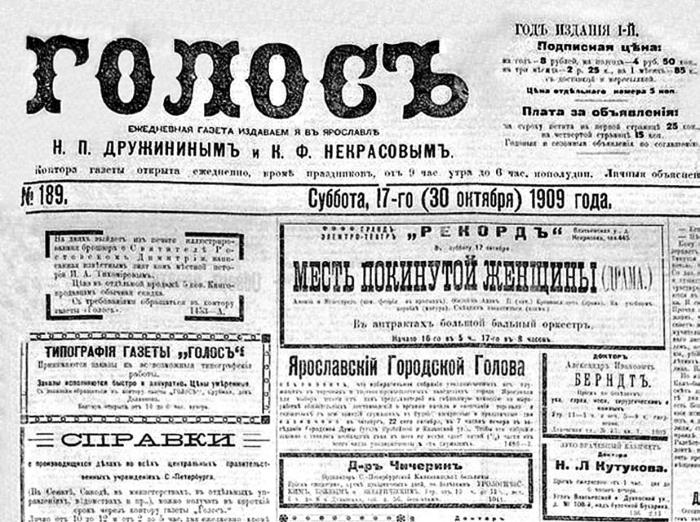 Выйдя на свободу, Константин Фёдорович принимается за издание ежедневной газеты «Голос». 18 января 1909 года программа газеты была представлена на утверждение ярославскому губернатору. Едва ли не с первых дней выхода газета «Голос», благодаря демократичности взглядов издателя и независимости от официальной точки зрения, становится самой популярной газетой в Ярославском крае. В конце 1909 года К. Ф. Некрасов и редактор газеты Н. П. Дружинин начинают издавать приложение к газете – еженедельный иллюстрированный журнал «Ярославские зарницы», где печатаются краеведческие и литературные материалы, в том числе стихи, рассказы, повести современных авторов, литературные воспоминания.
