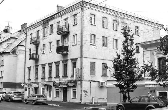 Современный вид здания, где Некрасов и Муратов пили чай на балконе: д. 15/40 на пересечении проспекта Октября с улицей Республиканской.
