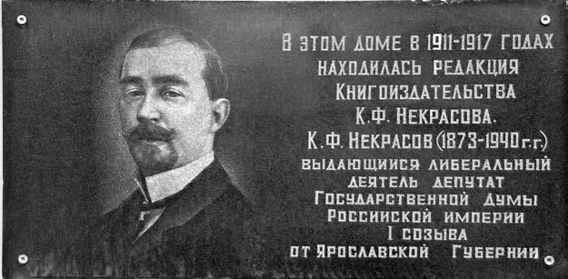 И, наконец, в 1911 году Некрасов приступает к осуществлению своих книгоиздательских замыслов. Контора издательства находилась в Москве, поэтому на многих книгах издательства К. Ф. Некрасова местом выхода значится Москва, однако типография располагалась в Ярославле, где и жил издатель до 1916 года. Именно в Ярославль отправляли писатели и поэты свои рукописи, а нередко приезжали и сами. Несмотря на то что книги печатались в провинции, на книжном рынке они отличались и уровнем художественного оформления, и тщательностью подготовки текстов. Бесспорно, ярославское издательство было достойным соперником издательствам столичным.