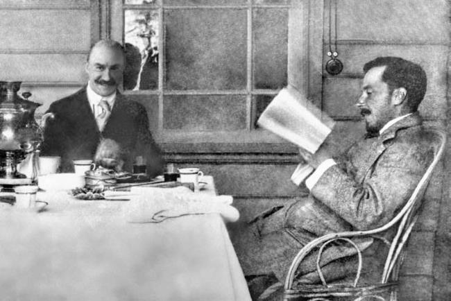 Константин Некрасов и Павел Муратов. 1913 г. На обороте фотографии – надпись рукой Некрасова: «Дом в Ярославле на углу Дворянской и Духовской, где я жил в 1910-ые годы, на балконе с П. П. Муратовым».