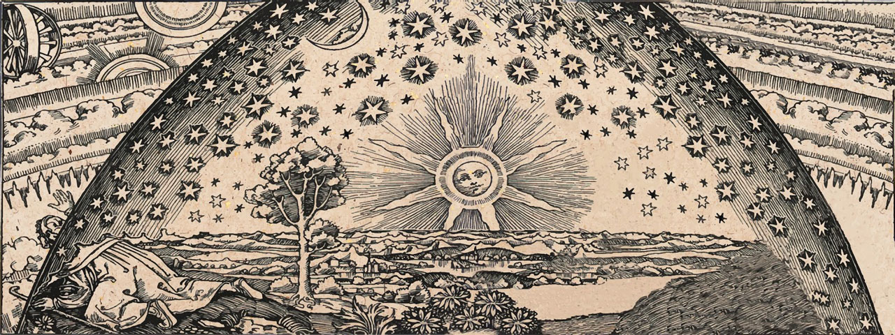 Прим: выделенные шрифтом слова можно проиллюстрировать известной гравюрой Фламмариона, на которой, среди прочего, изображен человек, высунувший голову за некую ширму, “наружу” и потому способный обозреть заключающий его мир. Условимся, что такое действие невозможно.
