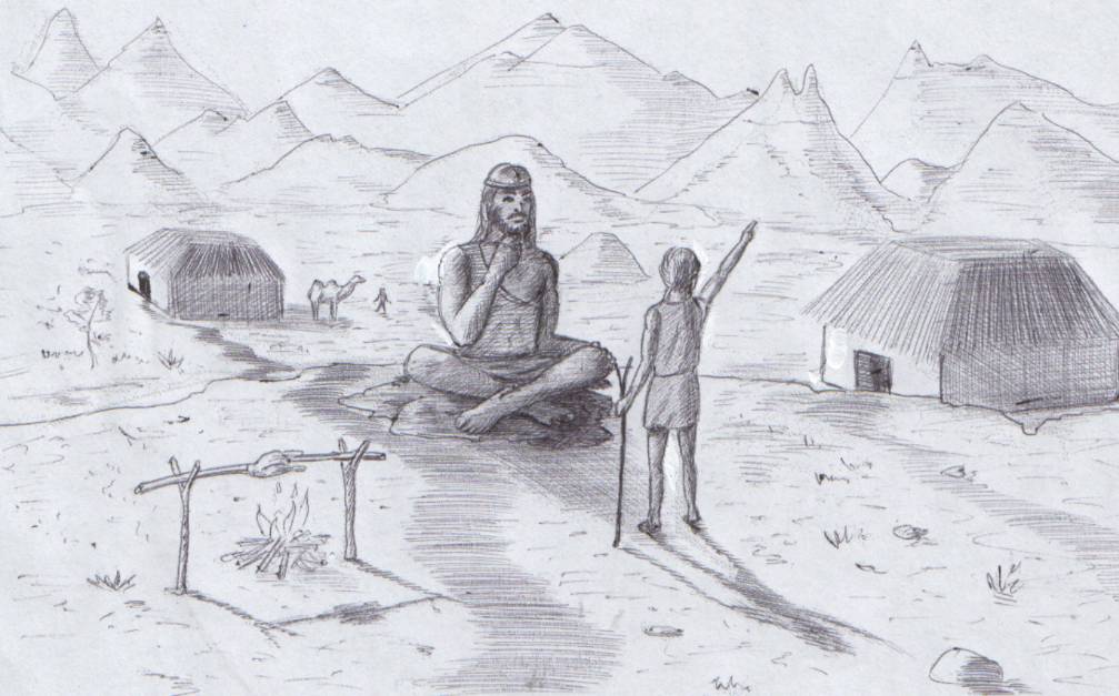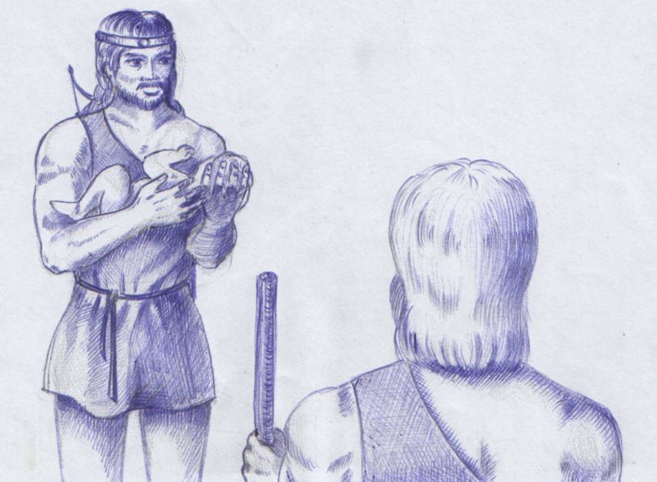 Почти каждый день с утра отец вместе с другими мужчинами уходил на охоту, оставляя Бено следить за шатром и пасти нескольких коз, принадлежащих их семье. Когда охота удавалась, отец был добрым и разговорчивым, а когда не удавалась, приходил злым и усталым. В такие дни к нему лучше было не подходить, чтобы не попасть под случайную оплеуху. Но однажды сын все же осмелился в такой злополучный день подойти к отцу.