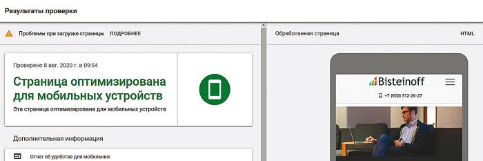 • Эффективное ранжирование сайта зависит от того, как он работает именно на мобильных устройствах. Google переходит на Mobile First Index. Узнать, насколько хорошо оптимизирована ваша страница с точки зрения Google, можно по этой ссылке: https://search.google.com/test/mobile-friendly