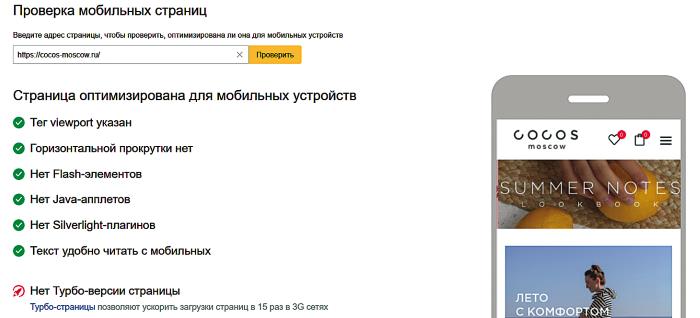 • В Яндексе качество мобильной версии сайта влияет на ранжирование в мобильном поиске. Оценить качество страницы в Яндексе можно через Яндекс. Вебмастер.