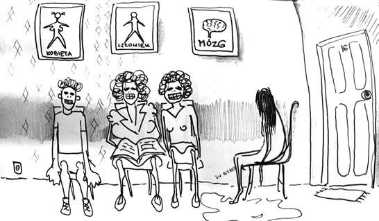 ОДНА ТАКАЯ: С пани Аниной я познакомилась в больничной палате. Она лежала рядом. Мы обе сломали ноги. Я – серьезно. А она свою сломала несерьезно. Где-то там бегала. В сущности, ничего особенного. Но поговорить нам не удалось: она постоянно смотрела в потолок. А по телевизору была интересная передача. Шоу талантов на предмет умений и внешности. Конкурс, кто съест червяка и сморщится меньше остальных. Я голосовала и эсэмэски посылала. И проголосовала за победителя. У меня всегда так. Когда выборы в парламент, я тоже ставлю на того, кто выиграет, и у меня всегда получается.
